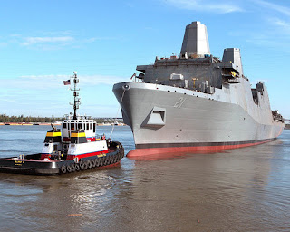 It is the fifth in a new class of warship - designed for missions that include special operations against terrorists. It will carry a crew of 360 sailors and 700 combat-ready Marines to be delivered ashore by helicopters and assault craft.